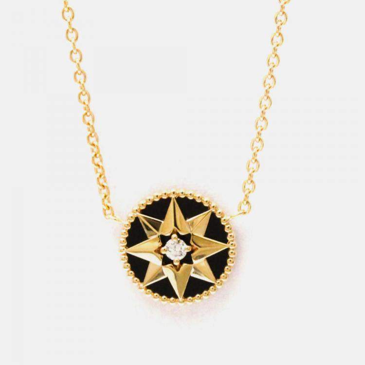 Christian Dior Rose Des Vents 18K Pink Gold Onyx Fashion Pendant Necklace