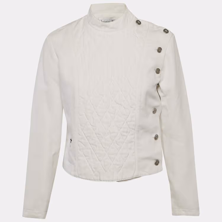 Pre Owned Christian Dior White Cotton Quilted Crossover Jacket M