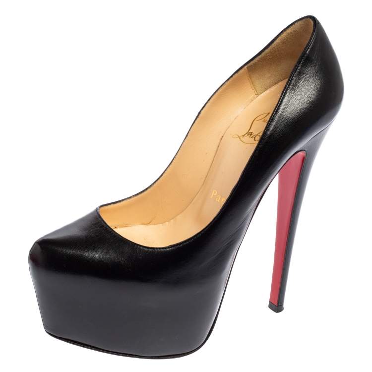 Christian Loboutin Black Leather Daffodile Platform Pumps Size 36.5