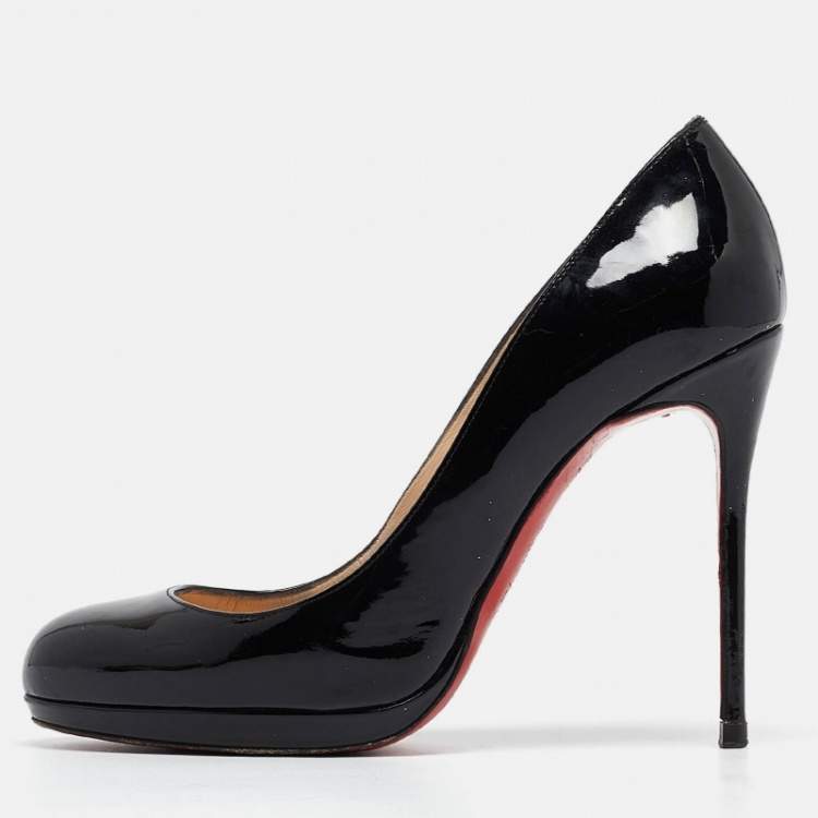 Pre Owned Christian Louboutin Black Patent New Simple  Pumps Size 38.5