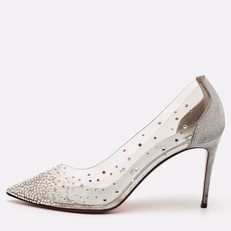 Christian Louboutin Degrastrass Size 39 Transparent/Silver Leather and PVC Pumps