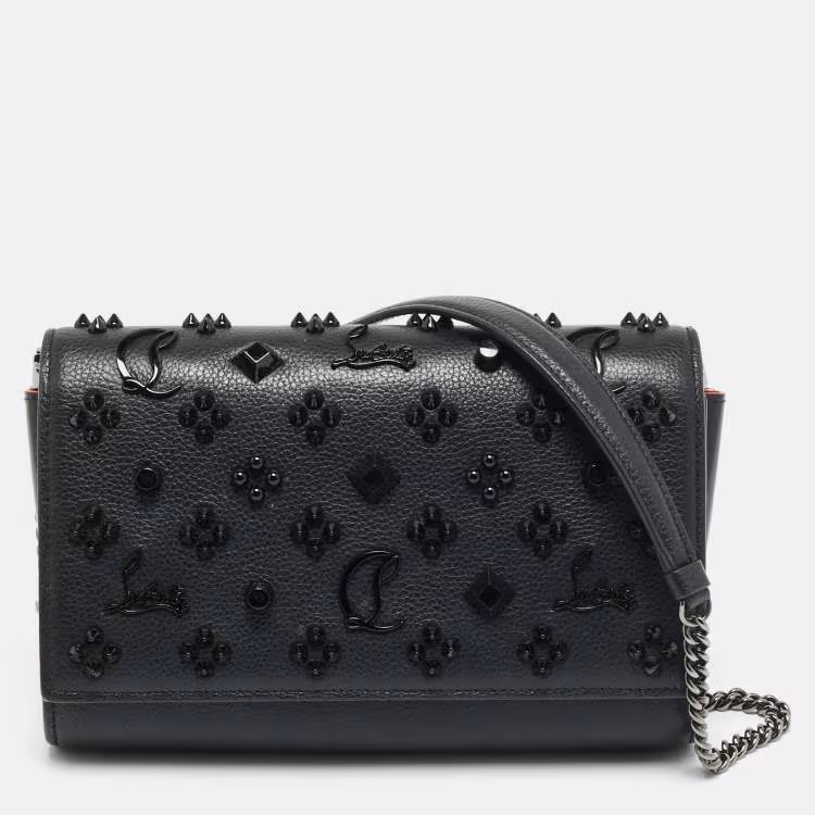 Christian Louboutin Paloma Embellished Black Patent and Leather Chain Clutch