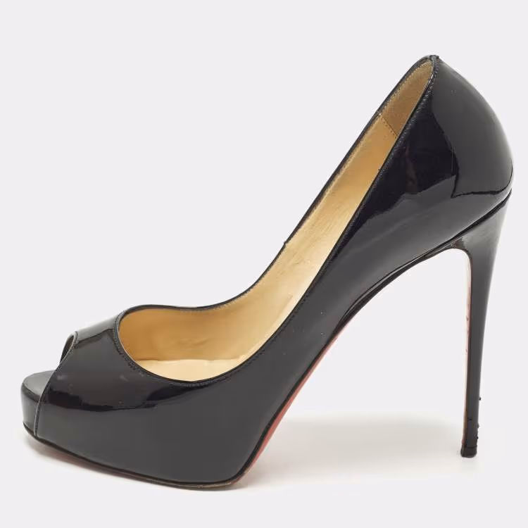 Pre Owned Christian Louboutin Very Prive Size 36 Black Patent Leather Platform Pumps