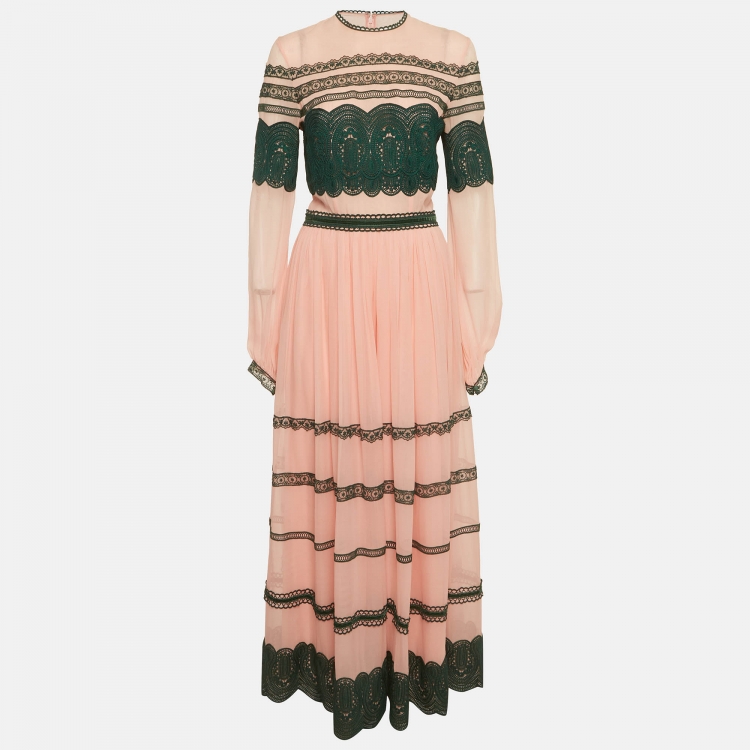 Pre Owned Costarellos Light Pink Chiffon & Lace Maxi Dress L