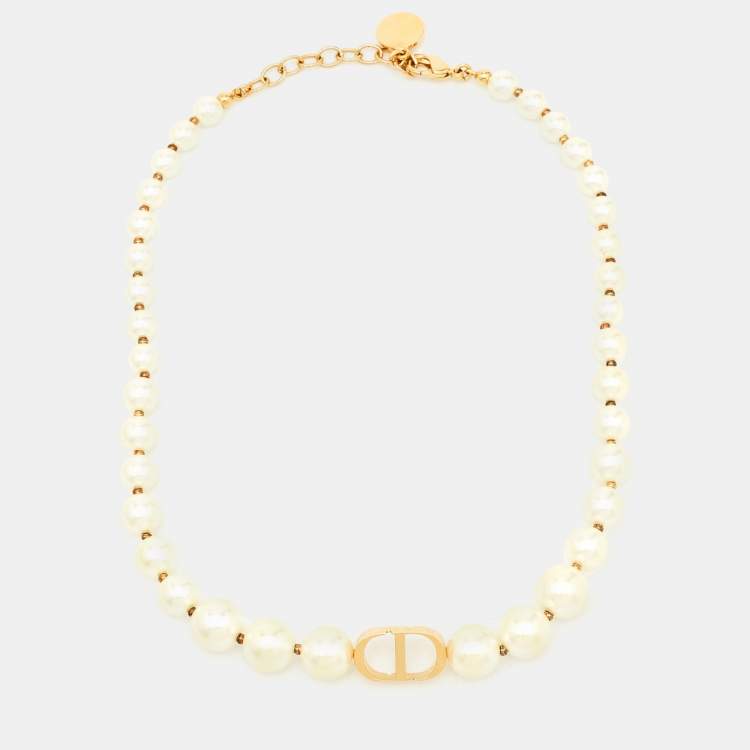 Dior 30 Montaigne Faux Pearl Gold Tone Choker Necklace