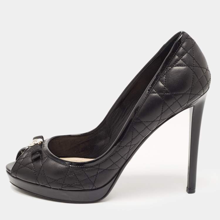 Dior Black Cannage Leather Bow Peep Toe Platform Pumps Size 40