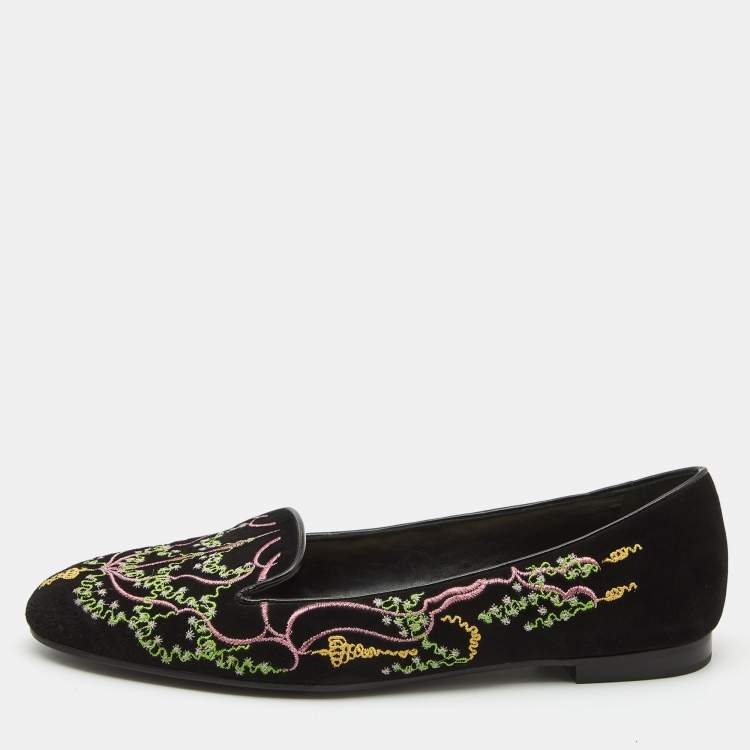Pre Owned Dior Black Embroidered Suede Surreal Smoking Slipper Size 41