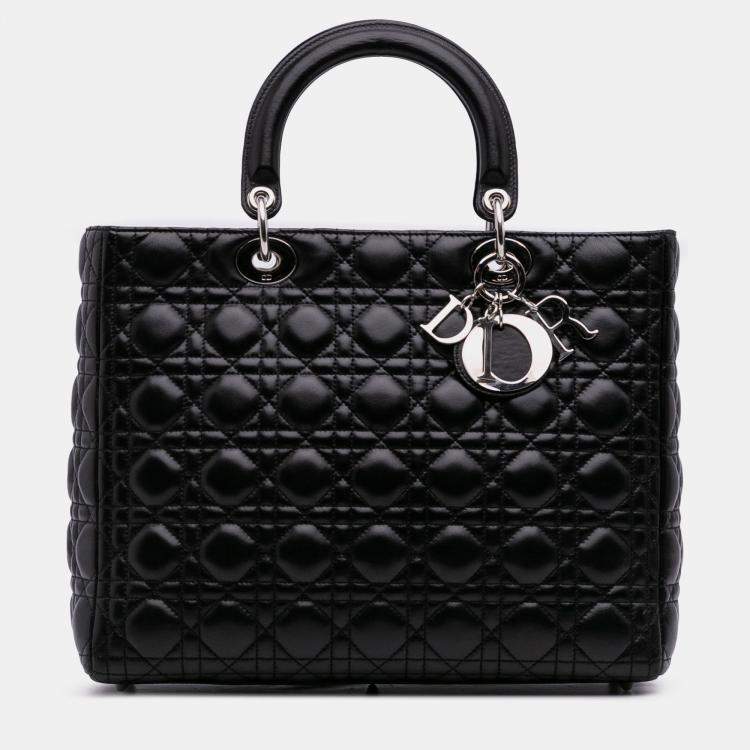 Pre Owned Dior Black Large Lambskin Cannage Lady Dior