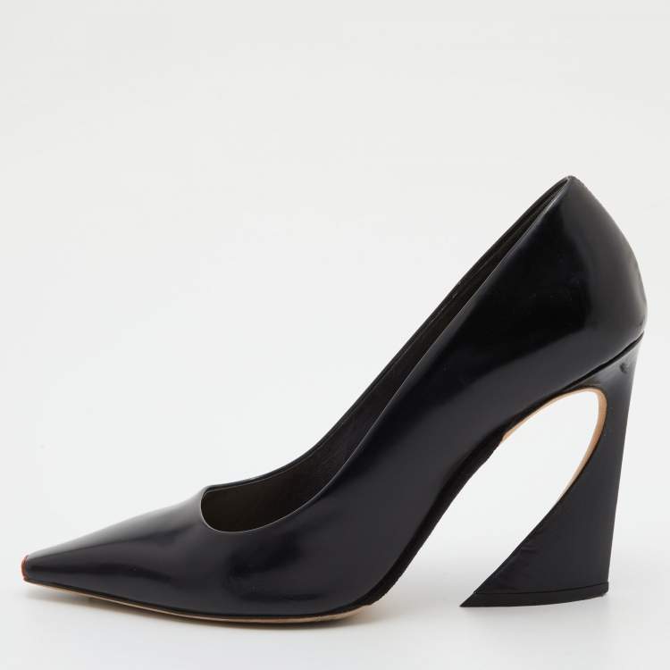 Pre Owned Dior Black Leather Curved Heel Pumps Size 40