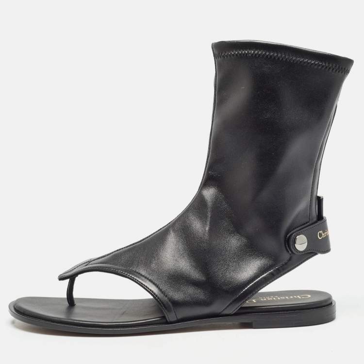 Pre Owned Dior Black Leather Spirit Thong Flat Sandals Size 38