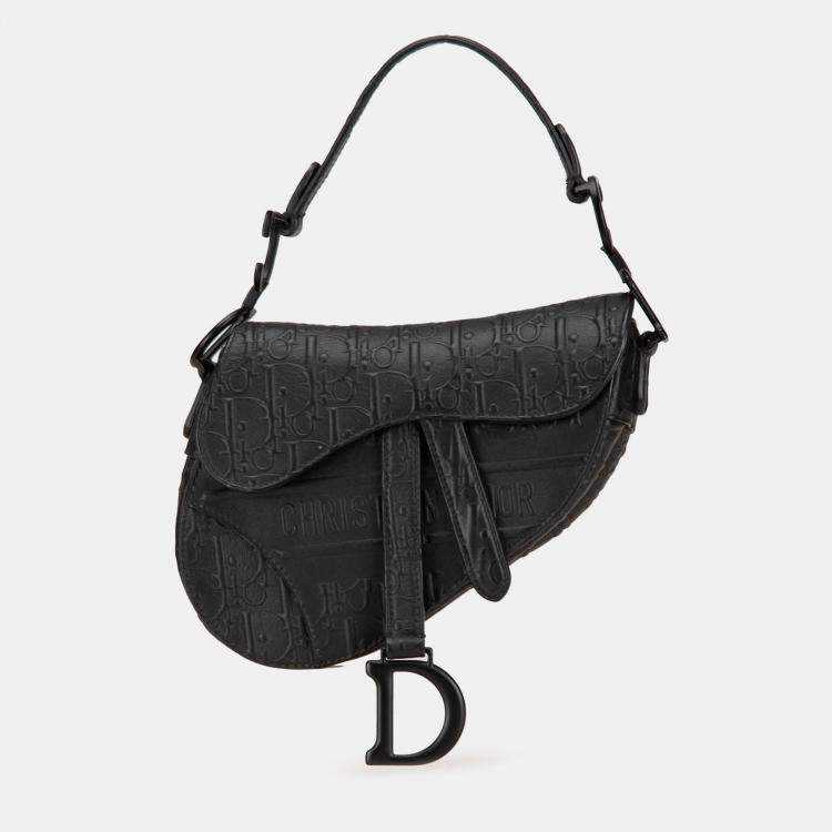 Pre Owned Dior Black Mini Oblique Embossed Calfskin Saddle Bag