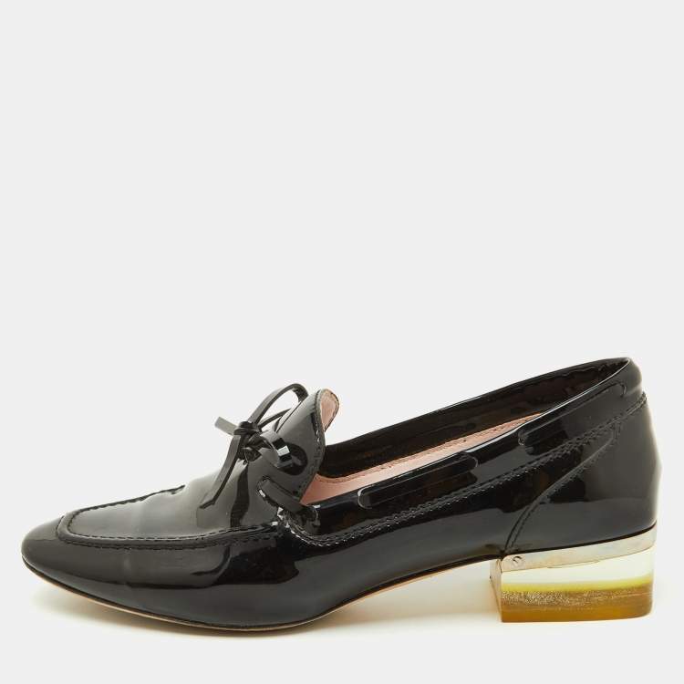 Pre Owned Dior Black Patent Leather Bow Slip On Loafer Pumps Size 37.5