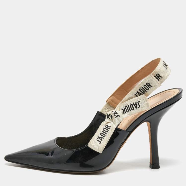 Dior Black Patent Leather J'adior Slingback Pumps Size 38.5