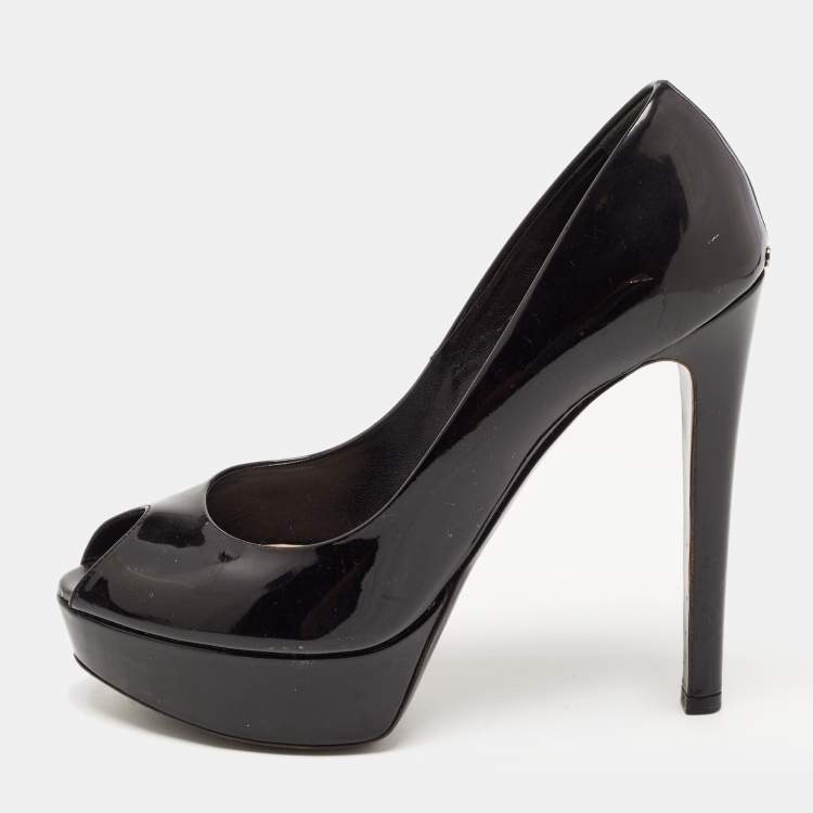 Dior Black Patent Leather Peep Toe Platform Pumps Size 38