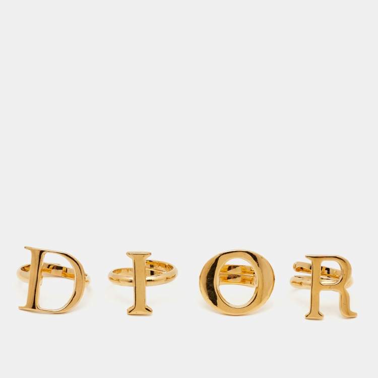 Pre Owned Dior Logo Gold Tone Ring Set Size 52