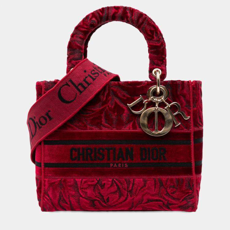 Dior Red Medium Embroidered Velvet Roses Lady D Lite