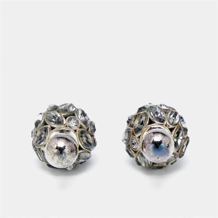 Pre Owned Dior Tribales Crystals Silver Tone Earrings