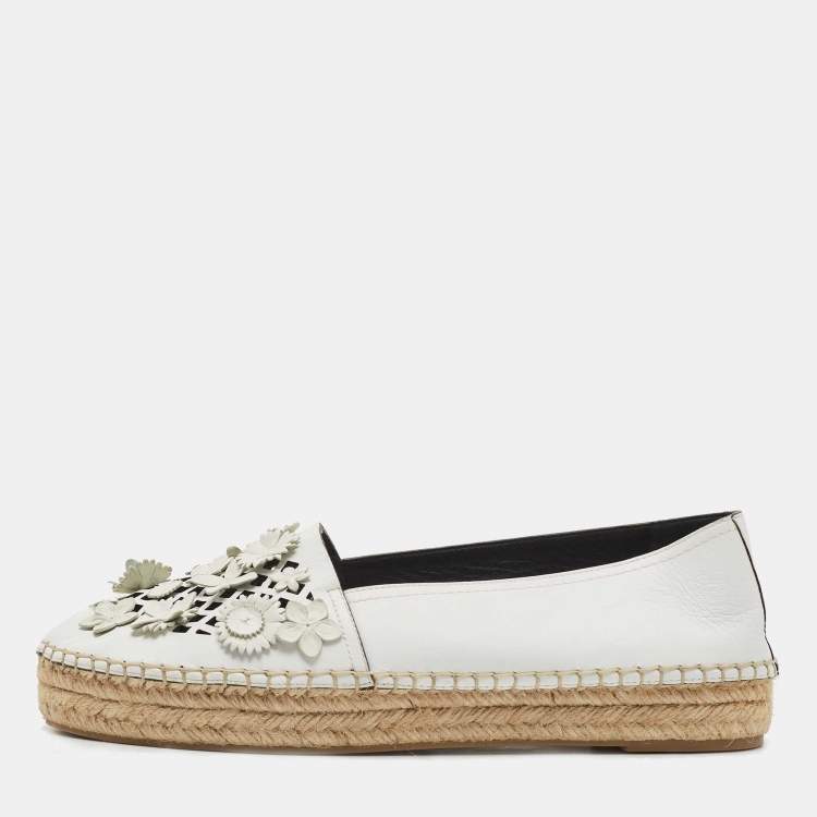 Pre Owned Dior White Laser Cut Leather Flower Applique Flore Flat Espadrilles Size 39
