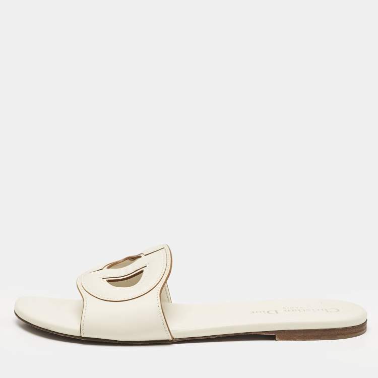 Dior White Leather D Club Flat Slide Sandals Size 39
