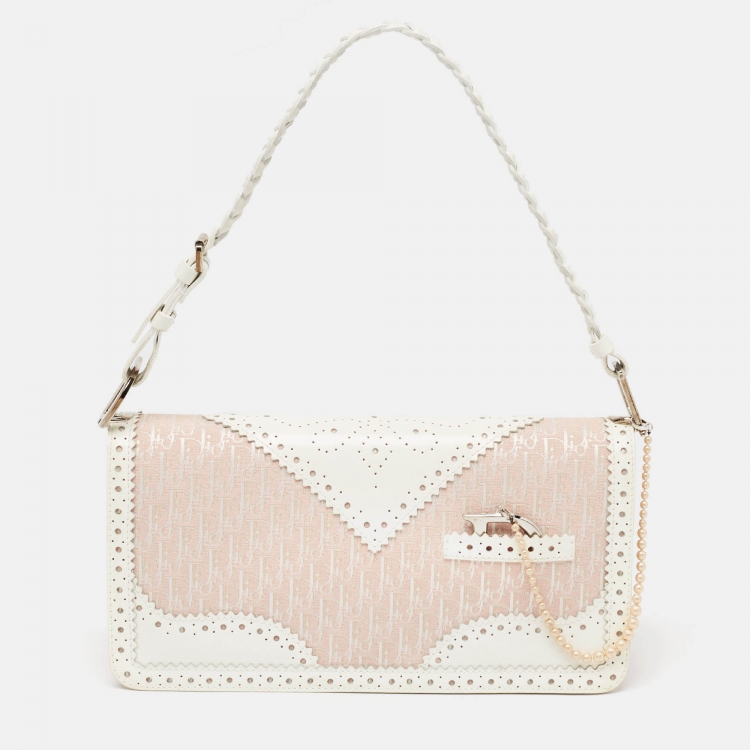 Pre Owned Dior White/Pink Brogue Leather and Oblique Canvas Dior D’ Trick Bag