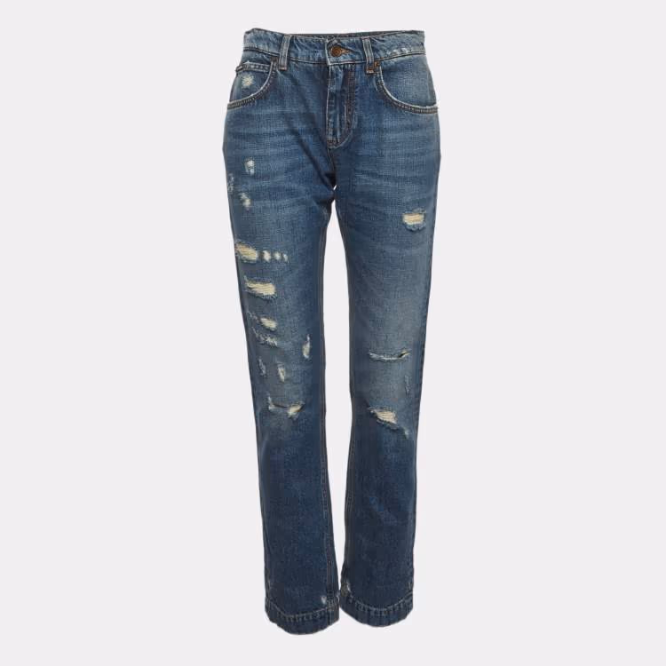 Pre Owned Dolce & Gabbana Blue Denim Baroque Heart Patch Jeans S/Waist 29"