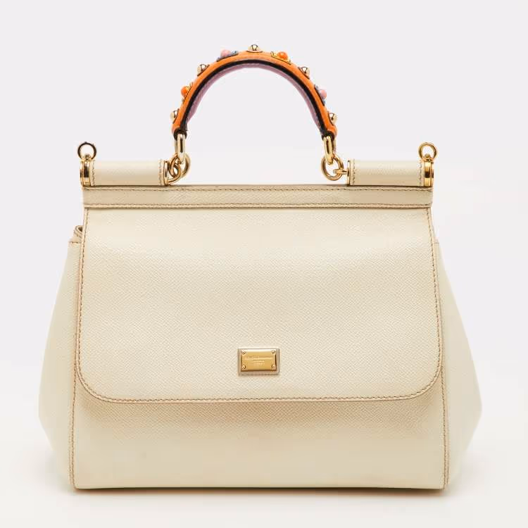 Pre Owned Dolce & Gabbana Miss Sicily Medium White Leather Top Handle Bag