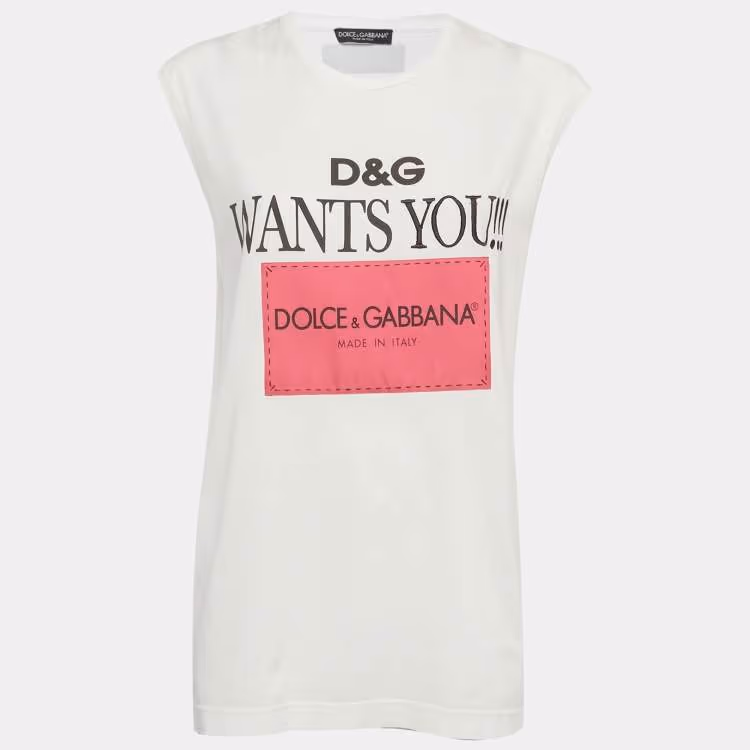Pre Owned Dolce & Gabbana White Printed Jersey Oversized T-Shirt XS