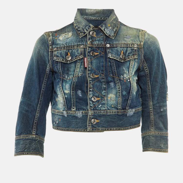 Dsquared2 Blue Distressed Denim Cropped Jacket S