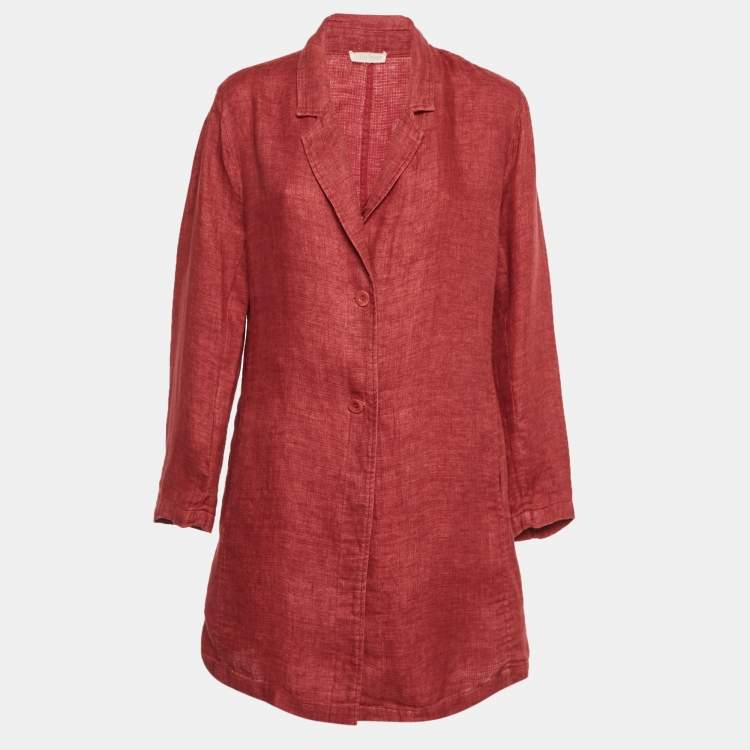 Pre Owned Eileen Fisher Red Linen Mid-Length Coat M