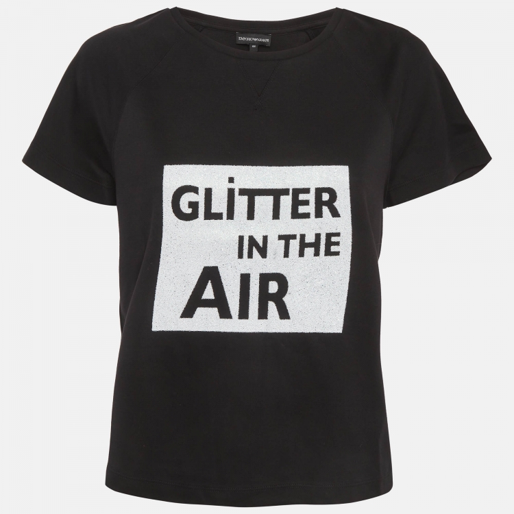 Pre Owned Emporio Armani Black Glitter Print Jersey Top M