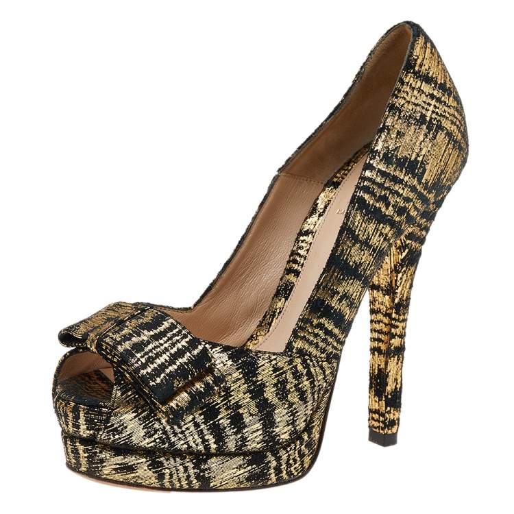 Fendi Black/Gold Suede Peep Toe Platform Pumps Size 37