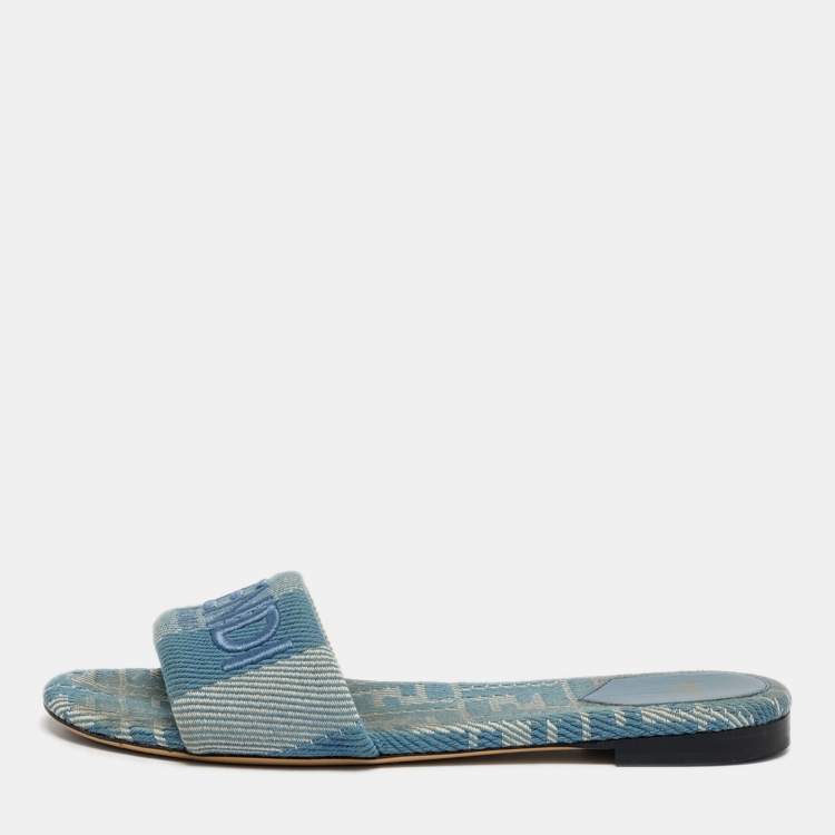 Fendi Blue Canvas Sunshine Flat Slide Size 40