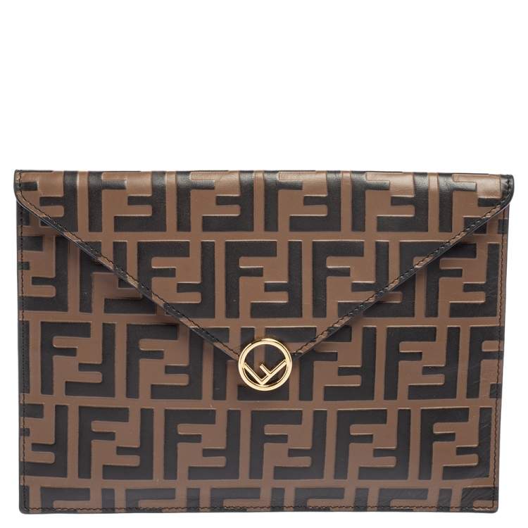 Fendi Brown Zucca Leather F Maya Envelope Pouch