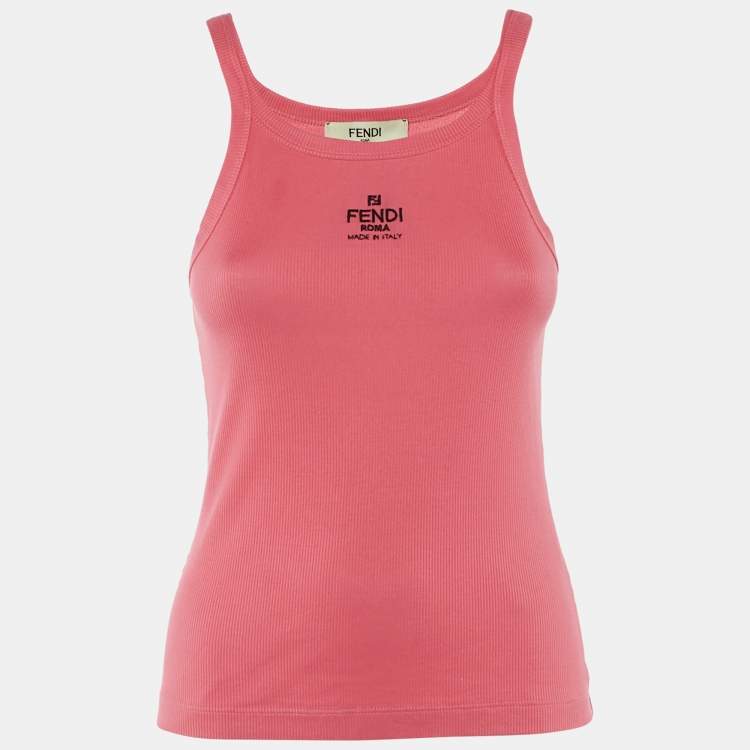 Fendi Coral Pink Logo Embroidered Rib Knit Tank Top S