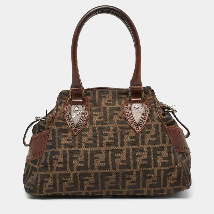 Fendi Tobacco Zucca Canvas and Leather Chef De Jour Bag