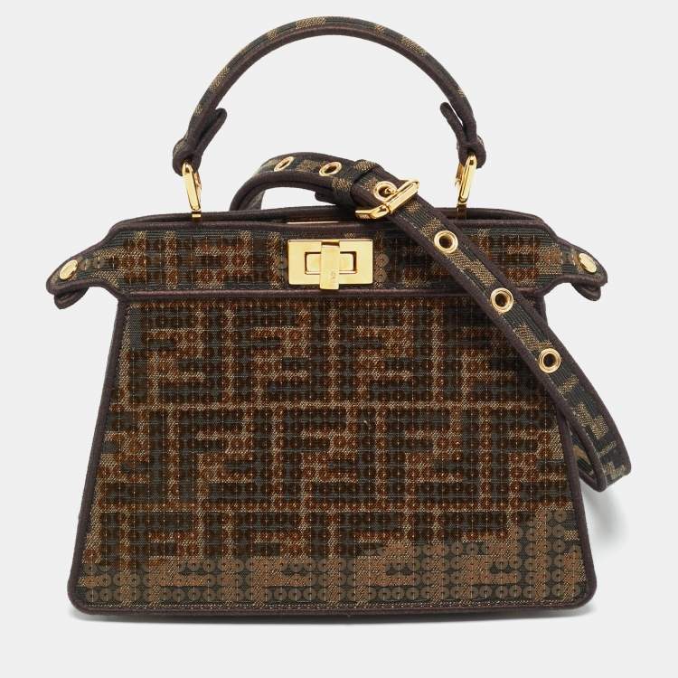 Fendi Tobacco Zucca Canvas and Sequins Petite Peekaboo ISeeU Top Handle Bag