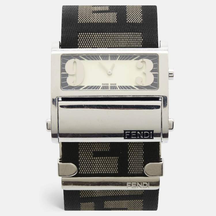 Pre Owned Fendi Zip Code 1120G Cream Dial Stainless Steel Canvas Women's Wristwatch 45 mm