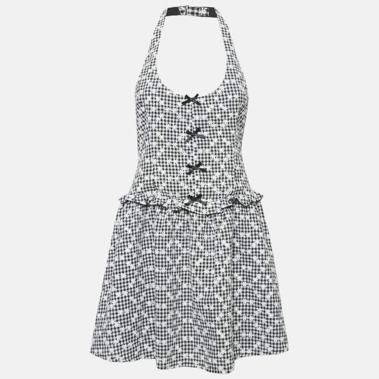 Pre Owned For Love & Lemons Monogram Floral Embroidered Checks Mini Dress M