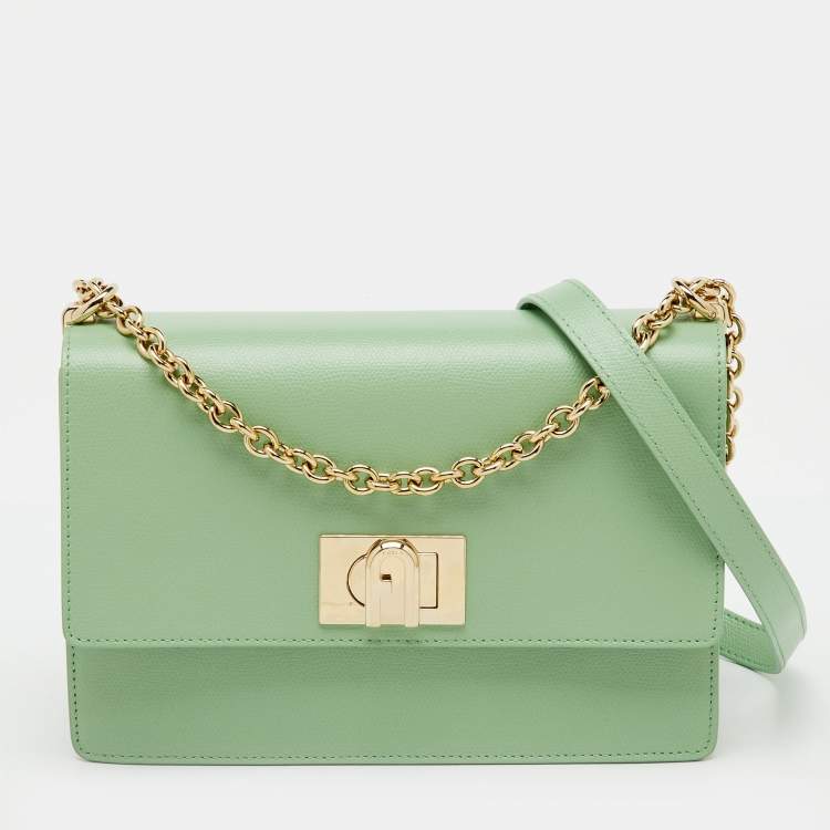 Furla Light Green Leather Small 1927 Crossbody Bag