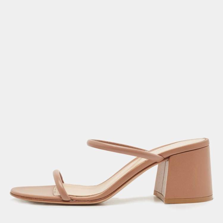 Gianvito Rossi Beige Leather Block Heel Slide Sandals Size 36