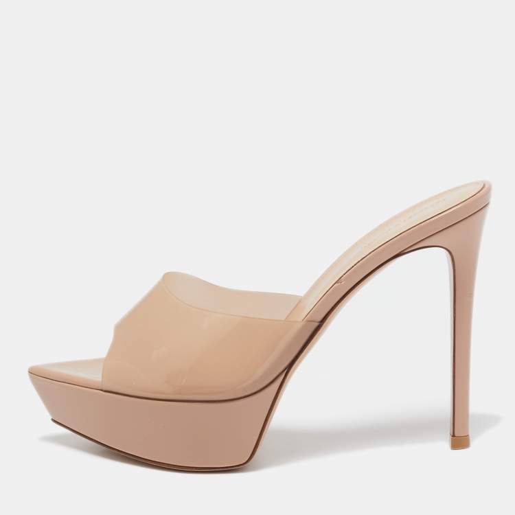 Gianvito Rossi Beige PVC Alise Platform Mules Size 38.5