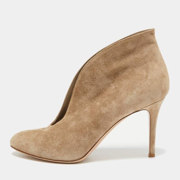 Gianvito Rossi Beige Suede Vamp Booties Size 39