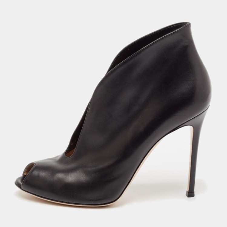 Gianvito Rossi Black Leather Vamp Booties Size 41
