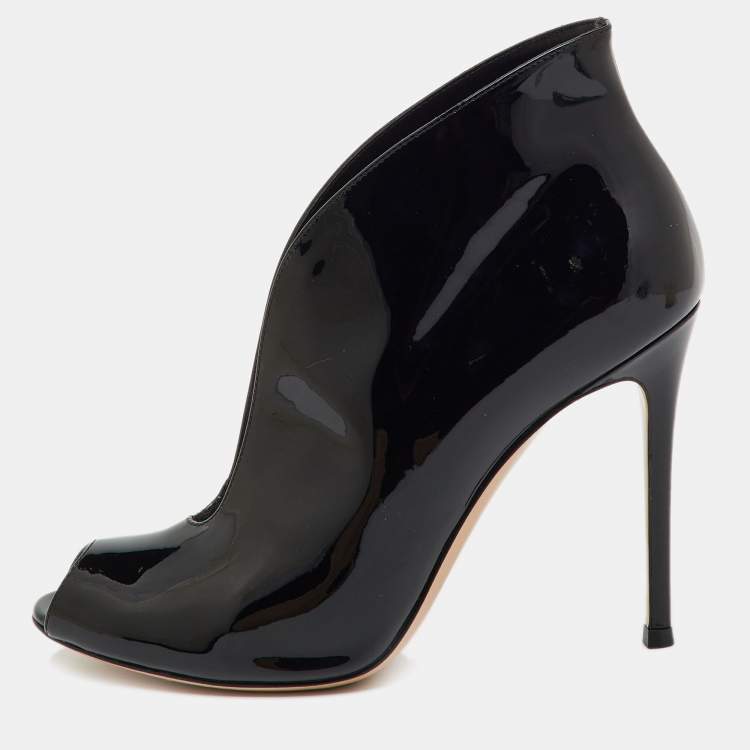 Pre Owned Gianvito Rossi Black Patent Leather Vamp Booties Size 39.5