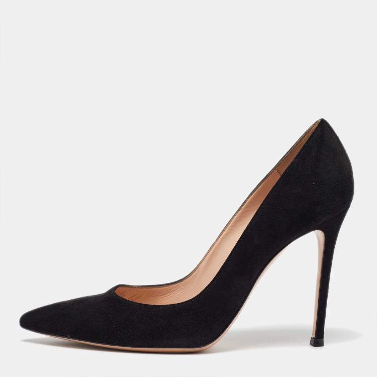Pre Owned Gianvito Rossi Black Suede Gianvito 105 Pointed Toe Pumps Size 38.5