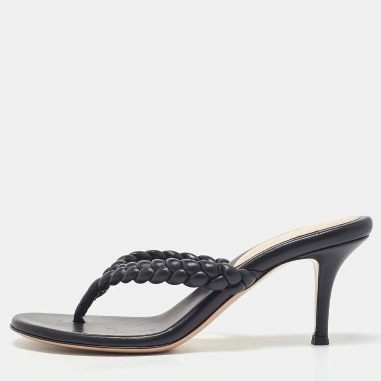Gianvito Rossi Black Woven Leather Thong Slide Sandals Size 38