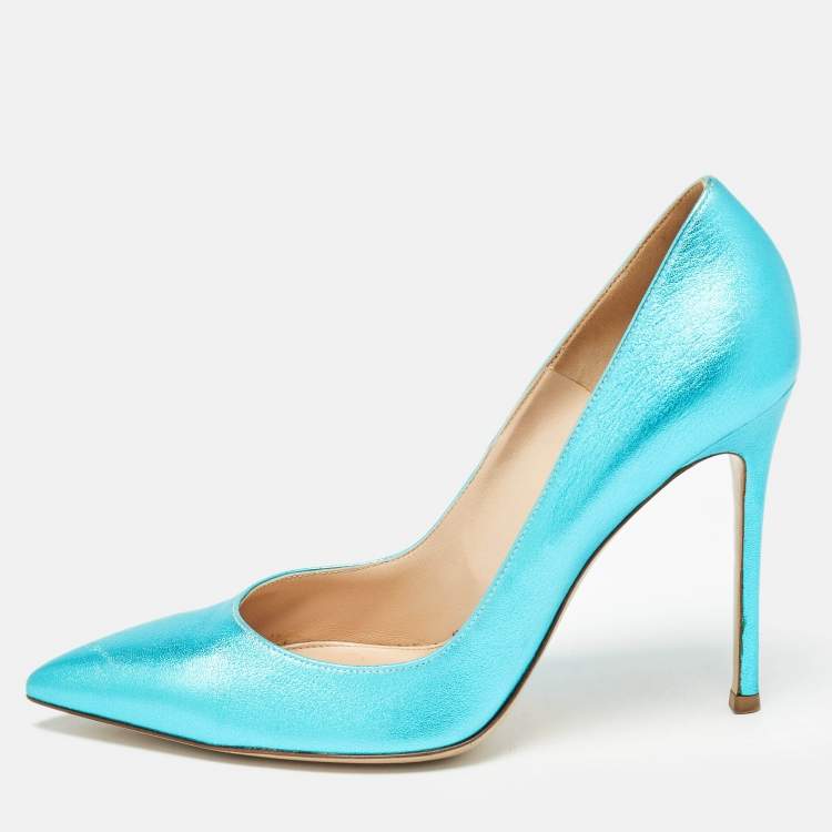 Gianvito Rossi Metallic Blue Leather Gianvito Pumps Size 39.5