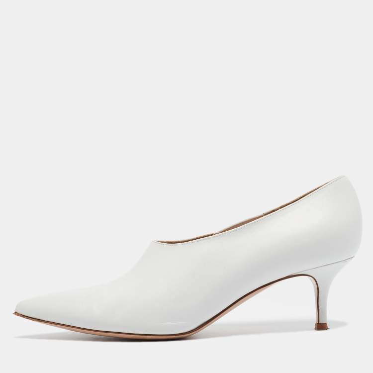 Gianvito Rossi White Leather Pointed Toe Pumps Size 38.5
