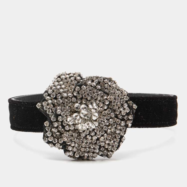 Pre Owned Giuseppe Black Velvet Leather Crystal Beads Silver Tone Choker Necklace