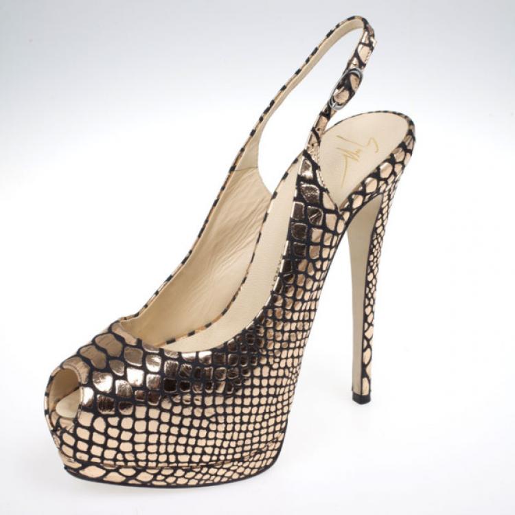 Giuseppe Zanotti Bronze Python Embossed Peep Toe Slingback Sandals Size 38
